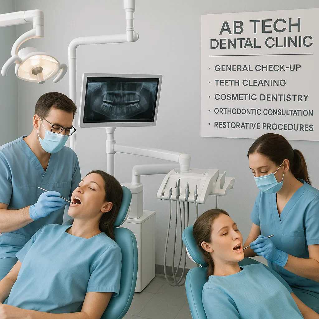 AB Tech Dental Clinic is a prominent dental institution delivering a wide range of high-quality dental services. Situated in a convenient location, it is noted for its well-equipped environment and state-of-the-art dental technology. The clinic is related with the educational and hands-on training possibilities offered by AB Tech, where students receive the opportunity to work under the supervision of experienced professionals.