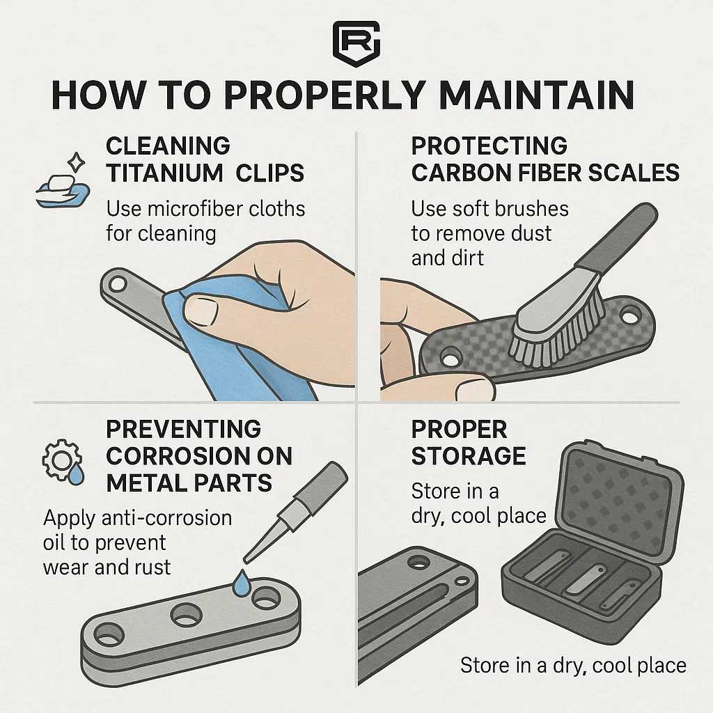 Maintaining Ripps Garage Tech accessories is easy, thanks to the durable materials used in their construction. To ensure your products last a long time, it’s essential to keep them clean and free from corrosion. Regularly wipe down titanium components with a microfiber cloth to remove fingerprints and dirt. For carbon fiber scales, use a soft brush to remove debris.